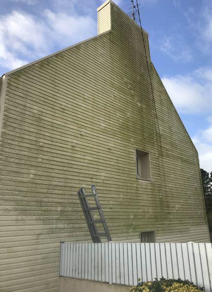 Démoussage d'un bardage de pignon sur une maison située sur la commune de Quimper (29000).