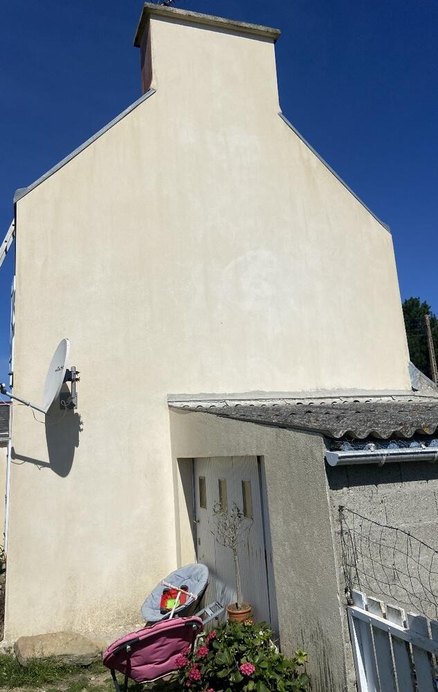 Nettoyage de façade sur une maison dont le pignon est orienté ouest, chantier situé à proximité de Quimper (29000).